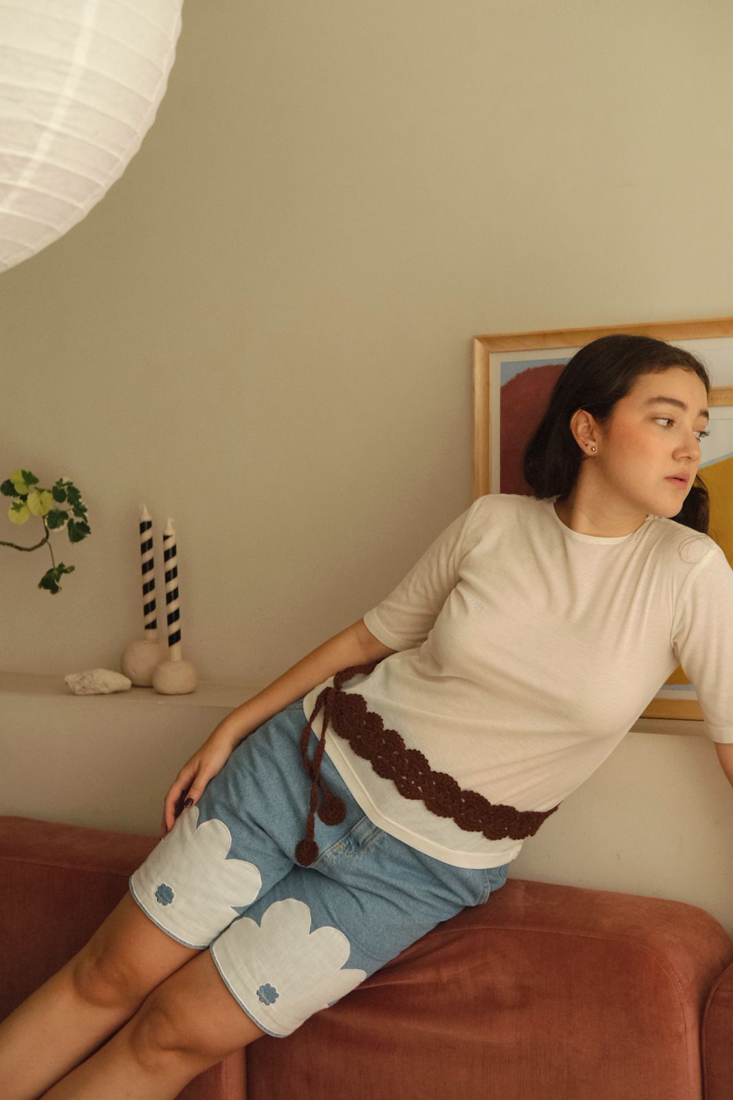 Nuestro cinturón cadeneta es una pieza soñada. Cuidadosamente tejida por las manos de mi abuela, formando una tira de arcos que terminan en tiras que te permiten ajustarlo a la medida que desees y terminales delicados que cuelgan.